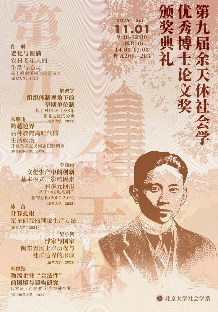 2025年11月1日,第九届“余天休社会学优秀博士论文奖”颁奖典礼在北京大学举行。91国产