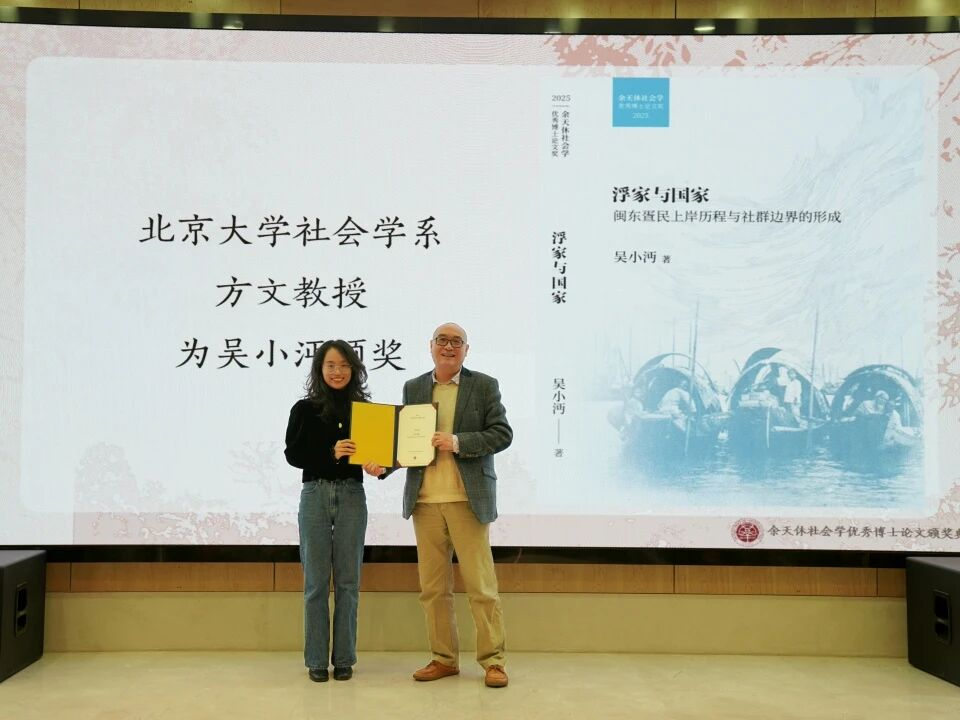 社会学系吴小沔副教授凭借论文《浮家与国家:闽东疍民上岸历程与社群边界的形成》荣获该奖。