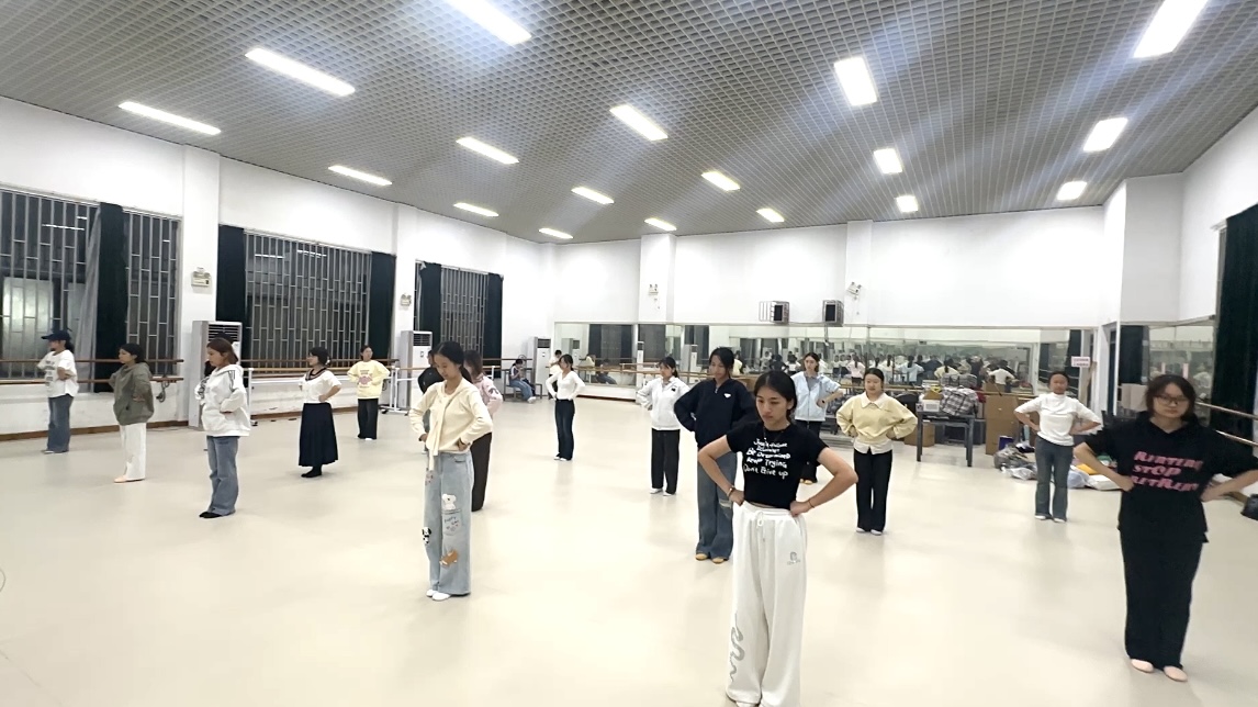 方阵与啦啦操排练人员在确保动作整齐和谐的同时,注重发挥专业特长,巧妙融入人文元素,充分展现人文学子的凝聚力与青春活力,力求在开幕式上呈现独具人文特色的表演。