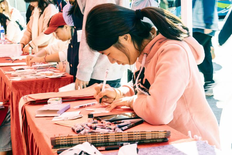 手工艺体验区同样引人驻足。手串DIY、香囊缝制、漆扇制作等摊位前,同学们亲手体验针线穿梭、墨彩点染,在一器一物中理解工艺背后的文化内涵,感悟中华文明之美。活动现场还设有抽奖环节,为参与者平添一份喜悦与期待。
