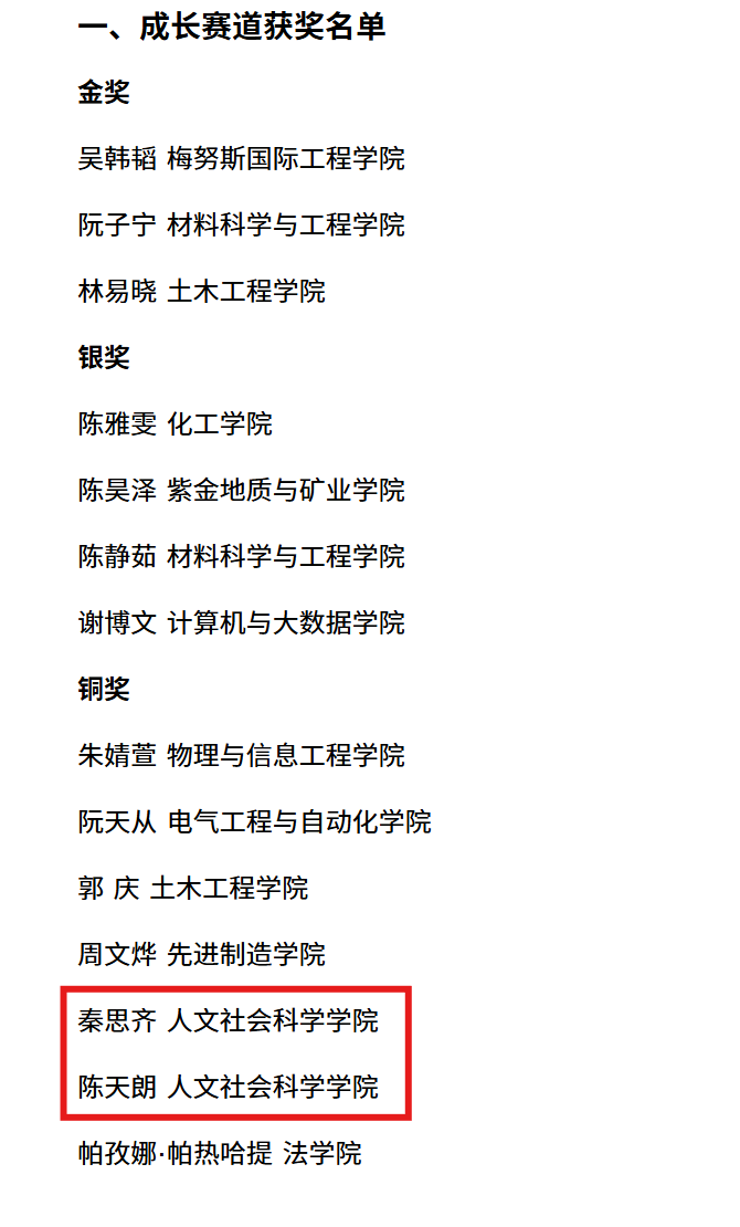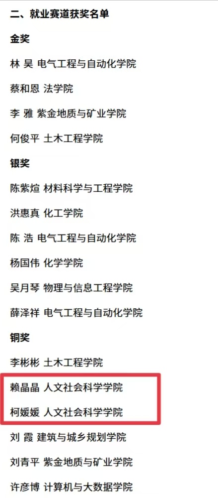 近日,91国产 公布第三届全国大91国产 职业规划大赛选拔赛暨第十九届职场文化节之职业生涯规划大赛获奖名单,91国产 秦思齐、陈天朗同学荣获成长赛道铜奖,赖晶晶、柯媛媛同学获就业赛道铜奖!