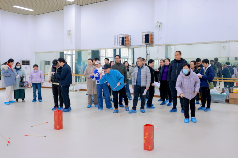 最后的游园投壶竞赛中,教职工们自由组队,在传统民俗游戏的乐趣中尽情体验,喝彩声此起彼伏。